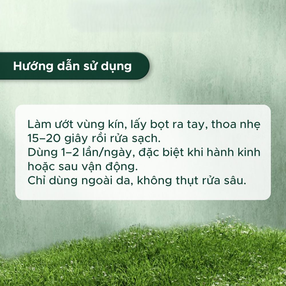 Làm ướt vùng kín, lấy một lượng bọt vừa đủ ra tay, thoa nhẹ và làm sạch trong 15-20 giây, sau đó rửa lại với nước sạch. Dùng hàng ngày từ 1-2 lần, đặc biệt trong những ngày hành kinh và sau khi vận động mạnh.